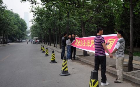 Tuy nhiên những người này chỉ vừa căng băng rôn ra thì được lực lượng cảnh sát với 2 xe túc trực ở đó ra khuyến cáo và đưa đi nơi khác, không xảy ra hiện tượng hô hào hay hành vi quá khích nào.